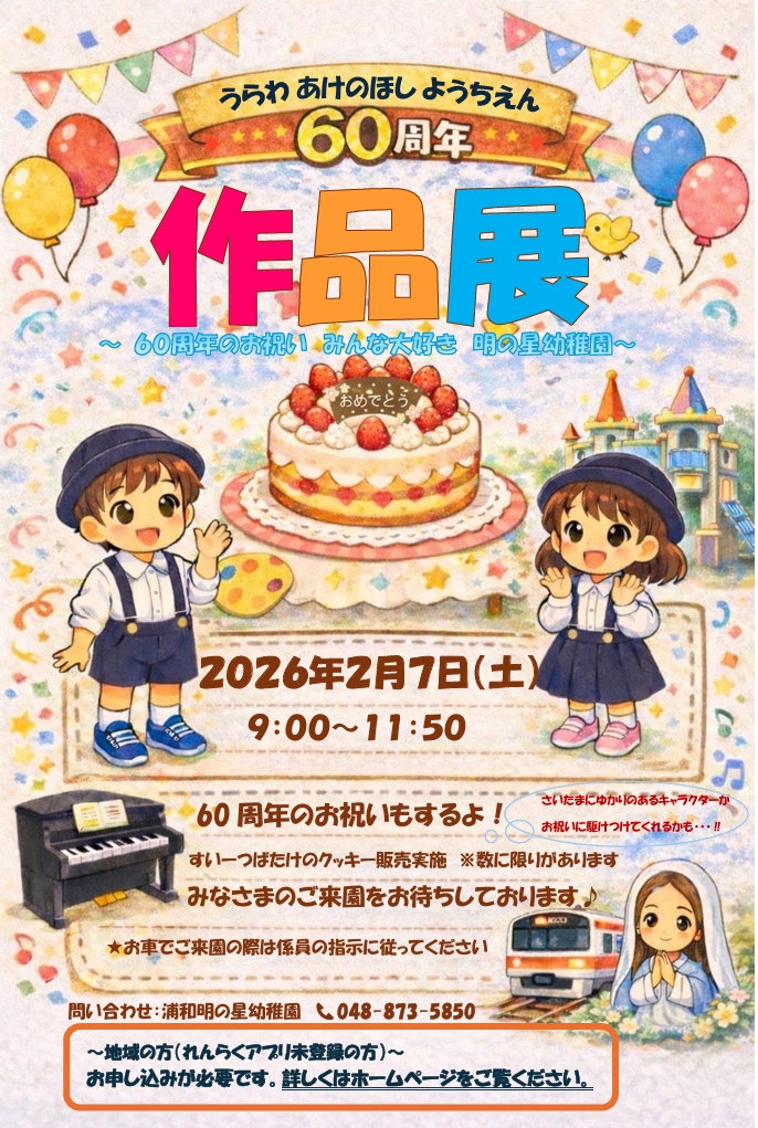 今回のテーマは「60周年のお祝い みんな大好き 明の星幼稚園」です。