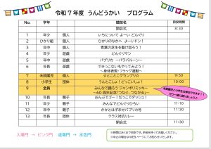 2025.10.01 10月11日(土)に運動会を行います! 未就園児や小学生も参加できる競技があります!! さらに今回は、60周年記念で 園児だけでなく、未就園児や小学生も一緒に ジャンボリーミッキーを踊ります♪ 是非遊びにきてください。 ※時間はあくまで目安なので、余裕を持ってお越しください。 ※中止の場合はWEBページにてお知らせいたします。